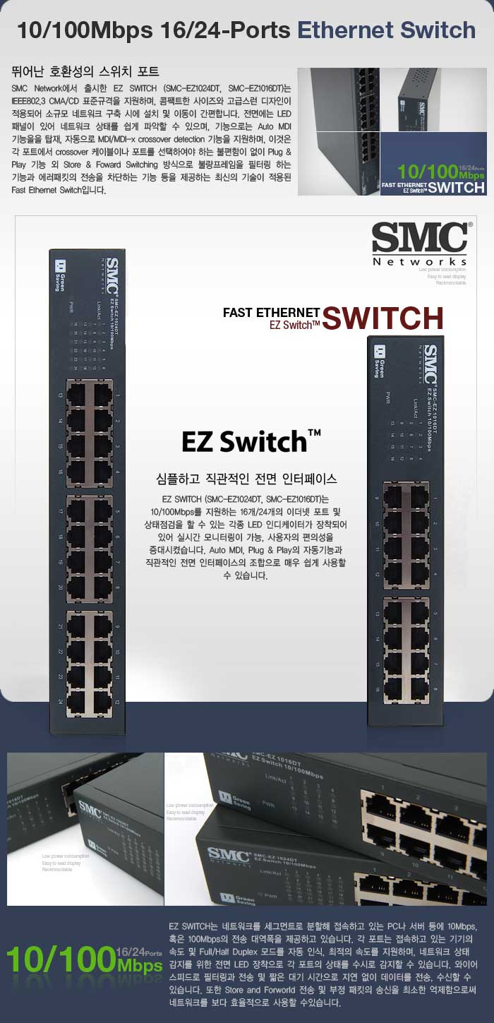 SMC [SMC-EZ1016DT] 16Æ÷Æ® 100Mbps ½ºÀ§Ä¡Çãºê